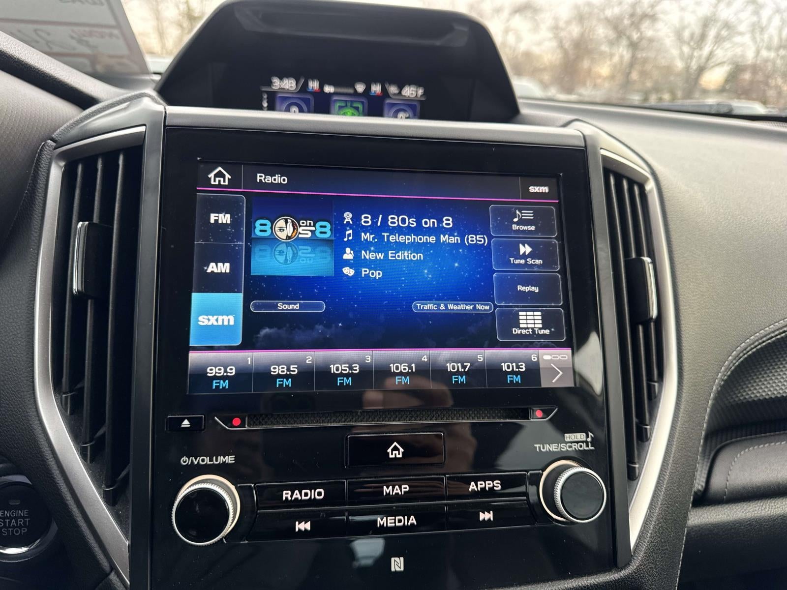 - Radio: Subaru Starlink 8.0" Multimedia Nav System -inc: AM/FM stereo HD Radio w/single-disc CD player w/MP3/WMA/CRR/RW file capability, multi-touch gesture high resolution display, voice activated controls, voice activated navigation, Bluetooth® audio streaming connectivity and hands-free phone connectivity, Bluetooth® hands-free SMS text messaging connectivity, Near Field Communication (NFC), iPod control capability, rear-vision camera display, SiriusXM All Access radio (4 months free trial/subscription required after), SiriusXM Traffic and Travel Link (3 years free trial/subscription required after), smartphone integration: AHA, Android Auto, CarPlay and Pandora, Starlink cloud applications: refer to subaru.com for app availability, steering wheel controls, 9 harmon/kardon speaker system, 3.5mm auxiliary input jack, dual USB input ports and body color roof mounted antenna